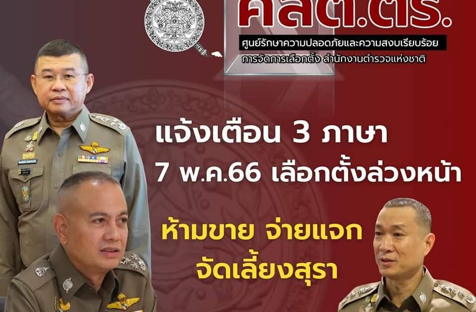 พล.ต.ท.นิธิธร จินตกานนท์ โฆษกศูนย์อำนวยการรักษาความปลอดภัยและความสงบเรียบร้อยการจัดการเลือกตั้ง สำนักงานตำรวจแห่งชาติ ( ศลต.ตร. ) ประชาสัมพันธ์พี่น้องประชาชนชาวไทย ชาวต่างชาติ รวมถึงนักท่องเที่ยว เกี่ยวกับกฎหมายการเลือกตั้งที่สำคัญ โดยในวันที่ 7 พฤษภาคม 2566 ซึ่งเป็นวันเลือกตั้ง ส.ส. ล่วงหน้านั้น