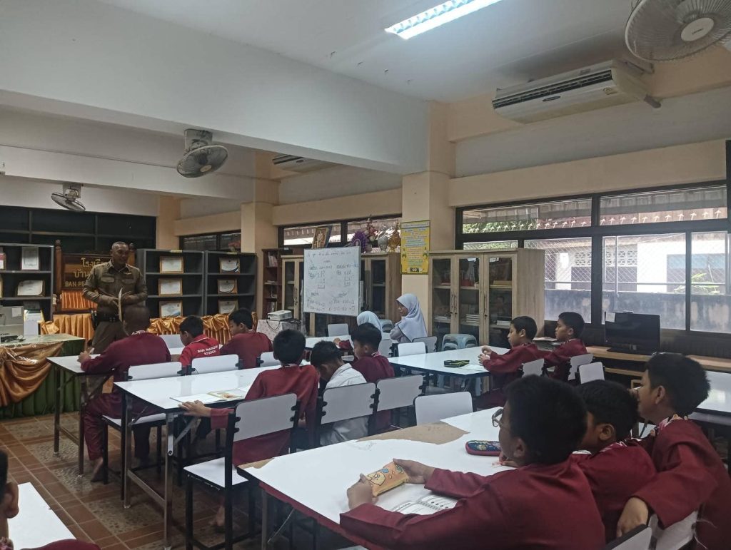 ดำเนินการสอนโครงการการศึกษาเพื่อต่อต้านการใช้ยาเสพติดในเด็กนักเรียน D.A.R.E. ประจำภาคเรียนที่ 2 ปีการศึกษา 2567 พร้อมสอดแทรกการส่งเสริมปลูกฝั่งและสร้างจิตสำนึกให้มีความจงรักภักดีต่อสถาบันชาติ ศาสนา และพระมหากษัตริย์ ตลอดจนการเอาตัวรอดจากการถูกคุกคามหรือถูกล่วงละเมิดทางเพศในรูปแบบต่างๆ ทางสื่อสังคมออนไลน์ให้กับเด็กนักเรียน ประถมปีที่5จำนวนนักเรียน37คน ณ โรงเรียนบ้านแป๊ะบุญ อ.บาเจาะ จว.นราธิวาส
