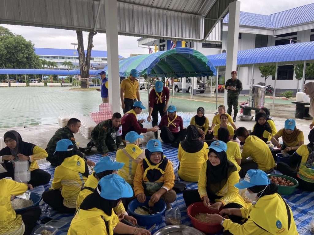 ร่วมกิจกรรมจิตอาสาภัยพิบัติ (ประกอบเลี้ยงผู้ประสบภัย) จัดทำข้าวกล่อง จำนวน 350 กล่องพร้อมน้ำดื่ม มอบให้ชาวบ้านในพื้นที่ฯ เพื่อช่วยเหลือและบรรเทาความเดือนร้อนของประชาชนผู้ประสบภัยในพื้นที่ฯน้ำท่วมขังบ้านเรือน 6 ตำบล 47 หมู่บ้าน โดยตั้งโรงครัวศูนย์อำนวยการจิตพระราชทานอำเภอบาเจาะ ณ อาคารอเนกประสงค์ที่ว่าการอำเภอบาเจาะ ต.บาเจาะ อ.บาเจาะ จว.นราธิวาส