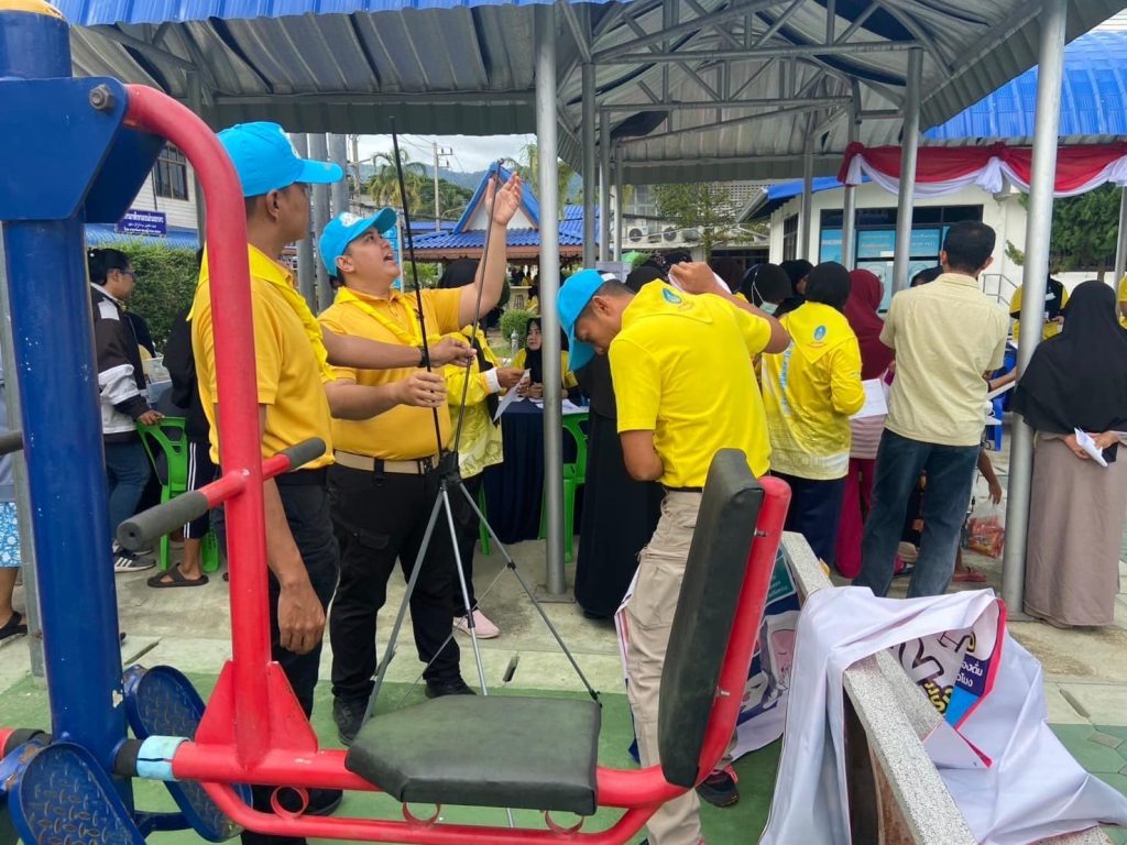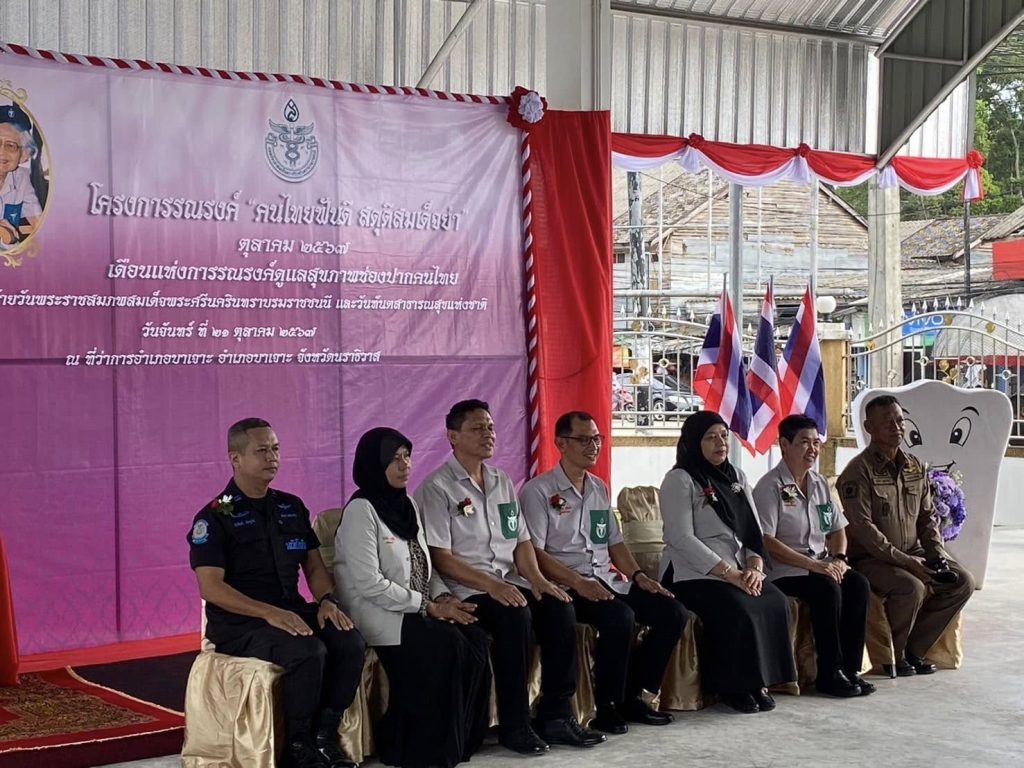 ร่วมกิจกรรมพิธีเปิด โครงการรณรงค์ “คนไทยฟันดี สดุดีสมเด็จย่า” เนื่องในวันคล้ายวันพระราชสมเด็จพระศรีนครินทราบรมราชชนนี และวันทันตสาธารณสุขแห่งชาติ พร้อมดำเนินกิจกรรมจิตอาสาอำนวยความสะดวกด้านจราจรให้แก่ประชาชนที่มาร่วมใช้บริการในโครงการฯ ณ ที่ว่าการอำเภอบาเจาะ ต.บาเจาะ อ.บาเจาะ จว.นราธิวาส โดยมีนายประภาส หมีดเส็น นายอำเภอบาเจาะ เป็นประธาน