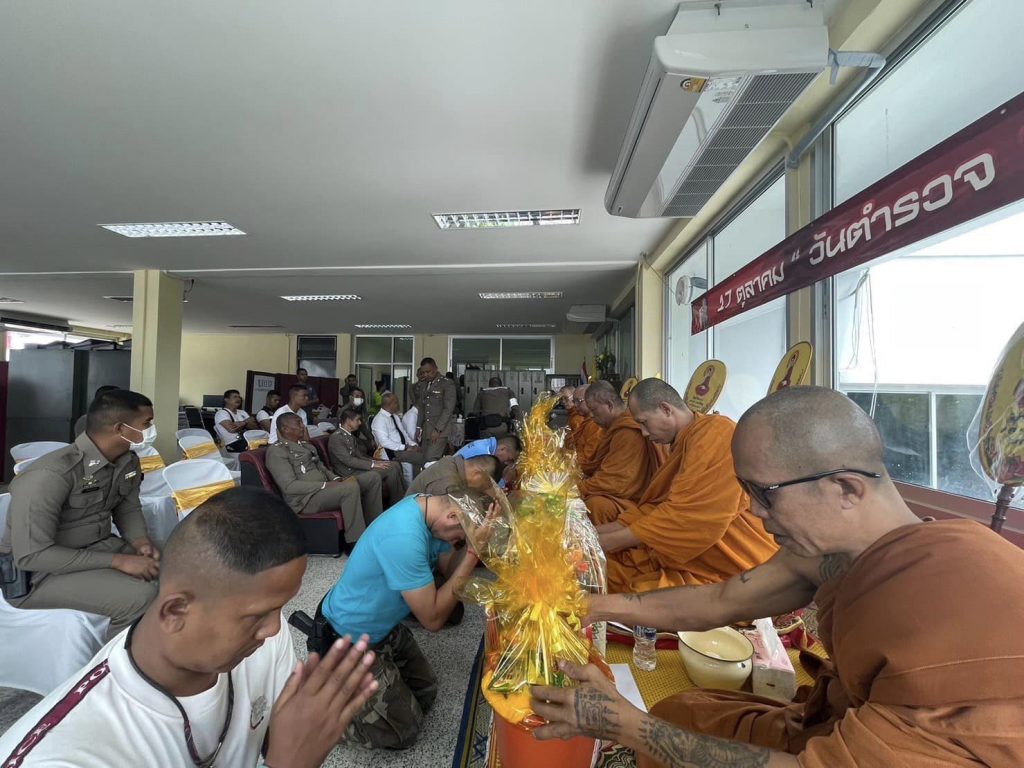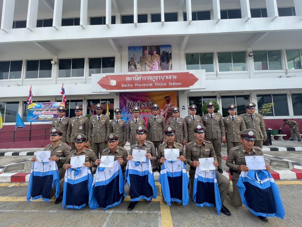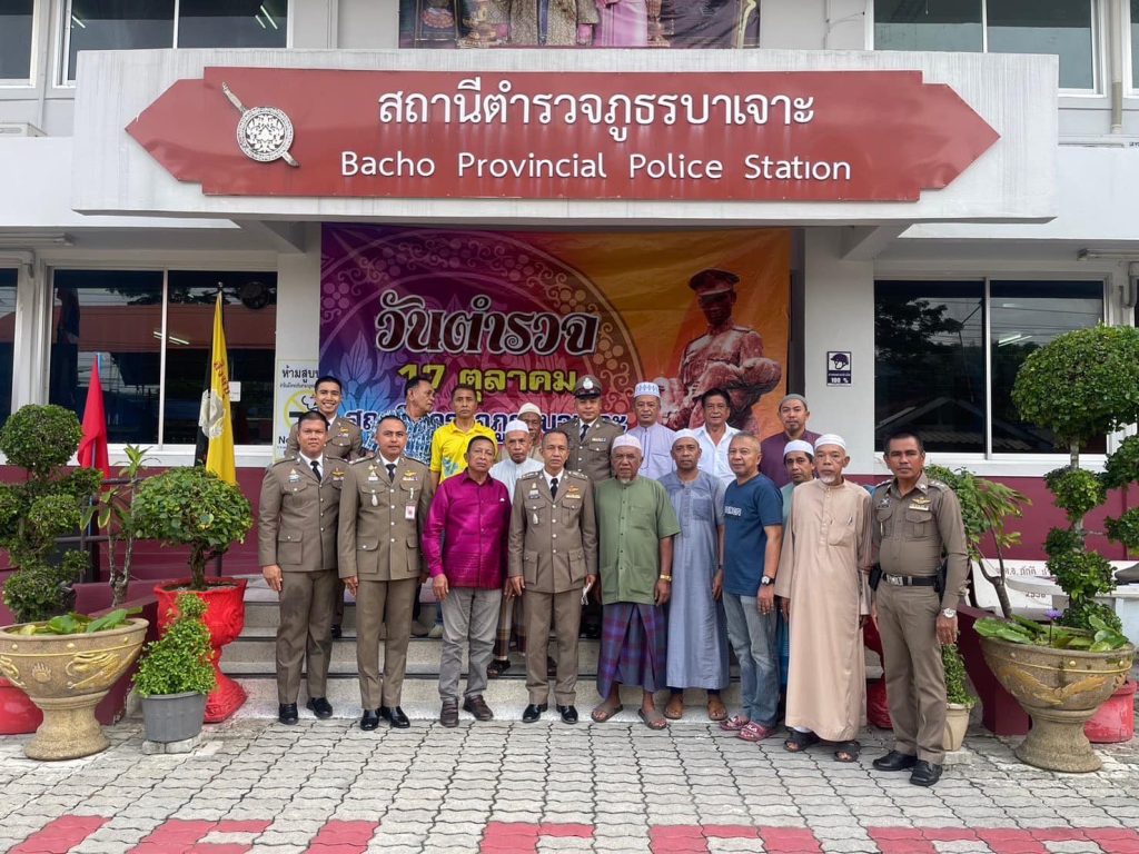 ร่วมกิจกรรม”วันสำคัญวันตำรวจ” ประจำปี พ.ศ.2566 ณ ลานหน้า สภ.บาเจาะ ม.2 ต.บาเจาะ อ.บาเจาะ จว.นราธิวาส เพื่อร่วมกิจกรรมเคารพธงชาติ และเริ่มพิธีอ่านสาสน์ ผบ.ตร./นำกล่าวคำสัตย์ปฏิญาณตน กล่าวอุดมคติตำรวจ และร่วมร้องเพลงมาร์ชตำรวจ พร้อมได้มอบประกาศนียบัตร ให้แก่ข้าราชการตำรวจดีเด่น ในแต่ละสายงาน เพื่อเป็นขวัญกำลังใจในการทำงาน โดย พ.ต.อ.ลุกมาน บาเกาะ ผกก.สภ.บาเจาะ เป็นประธาน ทั้งนี้ได้ร่วมกันทำพิธีกรรมทางศาสนา ทั้ง 2 ศาสนา (อิสลาม ,พุทธ) เพื่อเป็นความสิริมงคล และให้เกิดความปลอดภัยในการปฏิบัติหน้าที่ต่าง ๆ ของข้าราชการตำรวจ และพี่น้องประชาชน