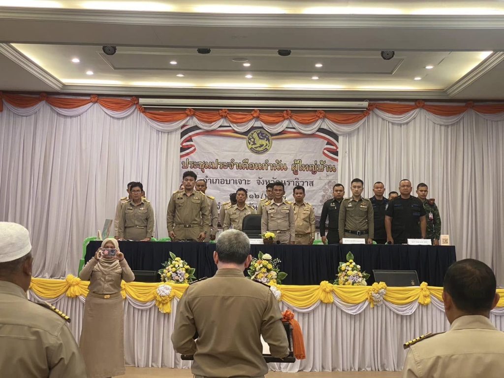 ร่วมประชุมประจำเดือน กำนัน ผู้ใหญ่บ้าน ประจำเดือนธันวาคม 2567 พร้อมทั้งยังได้ประชาสัมพันธ์การรวมกลุ่มกันของวัยรุ่นที่มีการแข่งรถ ส่งเสียงดัง ให้กับชาวบ้านบริเวณรอบๆ อีกทั้งยังได้กำชับให้ผู้ใหญ่บ้านตรวจสอบดูแลประชาสัมพันธ์เรื่องการต่อภาษี พ.ร.บ. ของยานพาหนะ และได้ชี้แจงกรณีการตรวจสอบบัตรประจำตัวประชาชนของเจ้าหน้าที่ตำรวจว่าปฏิบัติตามหน้าที่และตามที่กฎหมายกำหนด ณ หอประชุมกาญจนาภิเษก ต.บาเจาะ อ.บาเจาะ จ.นราธิวาส โดยมี นาย นิติพงษ์ ทาหา ปลัดอำเภอ จพง.ปค.ชำนาญการพิเศษอำเภอบาเจาะ เป็นประธาน