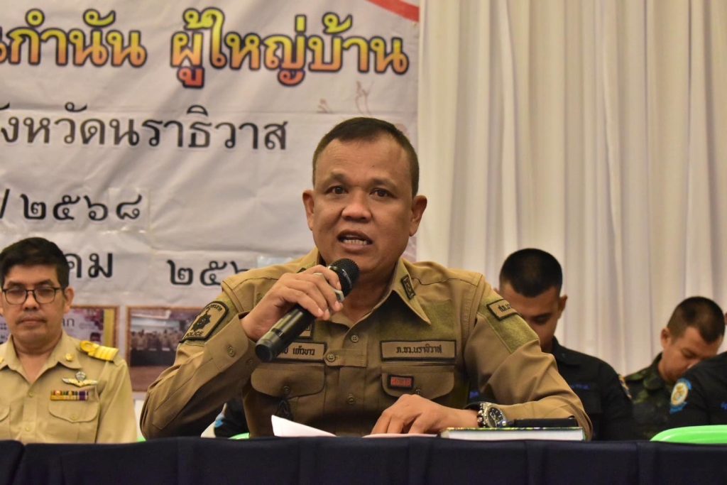 ร่วมประชุม 3 ฝ่าย โต๊ะข่าวความมั่งคง ทหาร ตำรวจ ฝ่ายปกครอง และหน.ส่วนฯ ที่เกี่ยวข้อง เพื่อแลกเปลี่ยนความคิดเห็น พูดคุยเกี่ยวกับปัญหาข้อขัดข้อง การข่าวในพื้นที่ฯ การจัดกำลังในการดูแลรักษาพื้นที่ฯ การซักซ้อมแผนเผชิญเหตุ และการขับเคลื่อนนโยบายรัฐบาล จังหวัดนราธิวาส การขับเคลื่อนตามฟังก์ชั่นของแต่ละส่วนราชการ ทั้งนี้ได้มีการมอบทุนเด็กกำพร้า จำนวน 4 ทุน มอบเกียรติบัตรให้กับตำบลและหมู่บ้านที่มียอดบริจาคโลหิตสูงสุด พิธีประดับอินทธนู มอบหนังสือสำคัญแสดงหลักฐานการเป็นผู้ใหญ่บ้าน พิธีลงนามบันทึกข้อตกลงความร่วมมือการป้องกันและแก้ไขปัญหายาเสพติด(MOU)