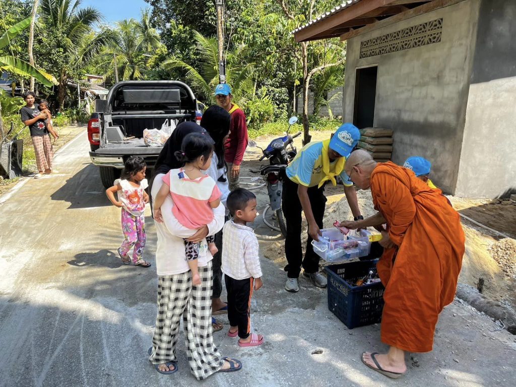 ลงพื้นที่ฯติดตามความคืบหน้าสร้างบ้านโครงการ“บ้านปันสุข” และร่วมทำกิจกรรจิตอาสาพัฒนา ร่วมกันกวนปูนและเทปูนพื้นบ้านตามโครงการบ้านปันสุข ให้แก่นางลีเยาะ ลาสะ บ้านเลขที่ 62 หมู่ที่8 ต.บาเจาะ อ.บาเจาะ จว.นราธิวาส อายุ 81 ปี และครอบครัว เพื่อบรรเทาความเดือนร้อนของประชาชนที่ยากจน ให้มีที่อยู่อาศัยมั่นคงแข็งแรงและมีคุณภาพชีวิตความเป็นอยู่ที่ดีขึ้น พร้อมทั้งแจกสิ่งของอุปโภคบริโภค เพื่อเป็นขวัญกำลังใจ และบรรเทาความเดือดร้อนในเบื้องต้นฯ ที่ได้รับการสนับสนุนจาก เจ้าอาวาสวัดอุไรรัตนารามและหน่วยเฉพาะกิจทหารพรานนาวิกโยธิน และได้รับประทานอาหารกลางวันร่วมกับ ผู้ใหญ่บ้านและประชาชนในพื้นที่ ณ บ้านบือเจ๊าะ หมู่8 ต.บาเจาะ อ.บาเจาะ จว.นราธิวาส