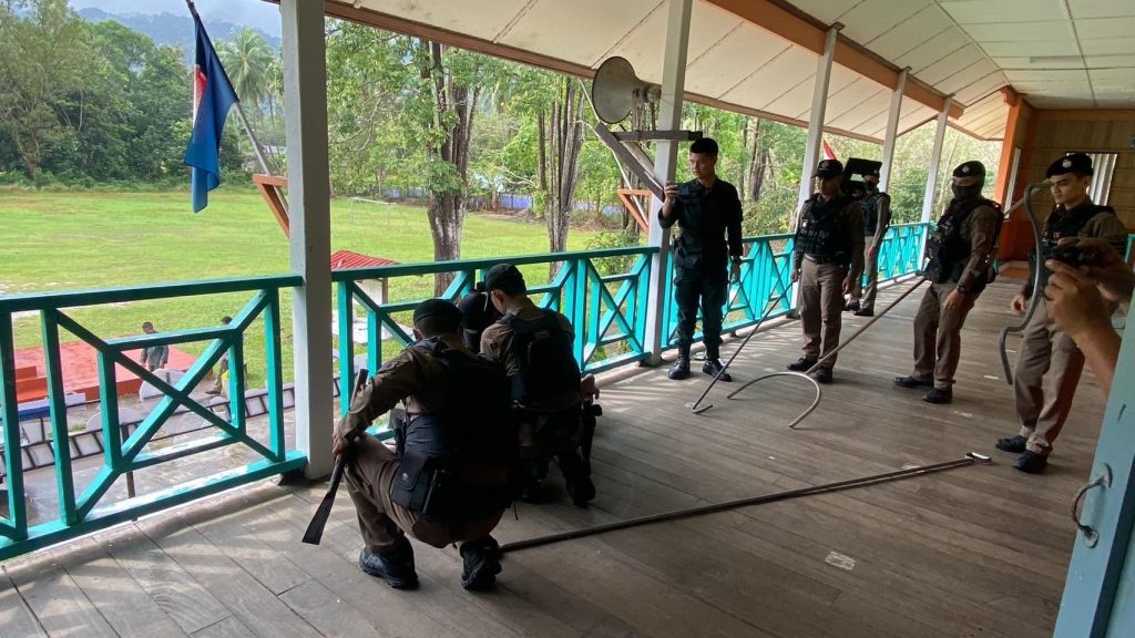 ออกพบปะเยี่ยมเยียน คณะครู นักเรียน ในการร่วมกิจกรรมสาธิตวิธีปฏิบัติเมื่อเกิดเหตุกราดยิง หรือสถานการณ์ฉุกเฉินต่าง ๆ ณ โรงเรียนน้ำตกปาโจ ต.บาเจาาะ อ.บาเจาะ จว.นราธิวาส เพื่อร่วมกิจกรรมสาธิต และแนะนำวิธีการเอาตัวรอดให้กับเด็กนักเรียน และคณะครู และผู้ดูแล ในด้านการป้องกันตนเอง หากมีสถานการณ์ที่อาจกระทบต่อชีวิตและทรัพย์สิน ตลอดจนวิธีเอาตัวรอด เมื่อตกอยู่ในสถานการณ์ที่คับขัน ไม่ปลอดภัย (อาทิเช่น เหตุ Active Shooter บุคคลคลุ้มคลั่ง วิกลจริต หรือเหตุการณ์ที่อาจเป็นอันตราย หรือกระทบต่อชีวิตและทรัพย์สิน) โดยยึดหลัก Run Hide Fight “หนี ซ่อน สู้”ตามแนวทาง และ นโยบายของสำนักงานตำรวจแห่งชาติ