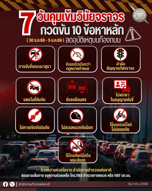 7 วันคุมเข้ม ลดอุบัติเหตุ “ปีใหม่ 2569”