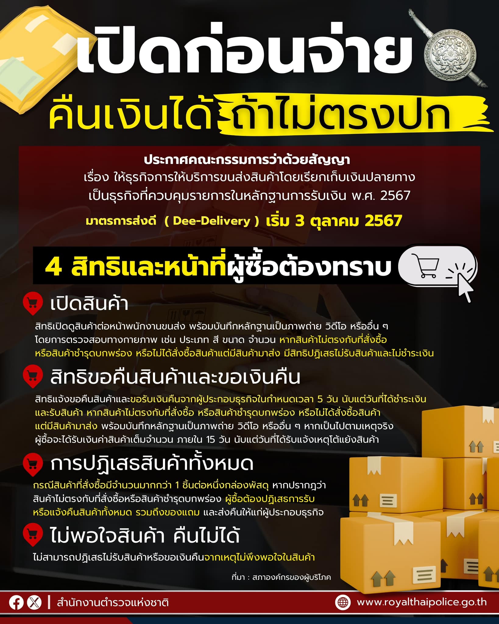 เริ่มแล้ว ช้อปออนไลน์ เปิดก่อนจ่าย คืนเงินได้ ถ้าไม่ตรงปก.มาตรการส่งดี มีผลบังคับใช้ตั้งแต่ 3 ตุลาคม