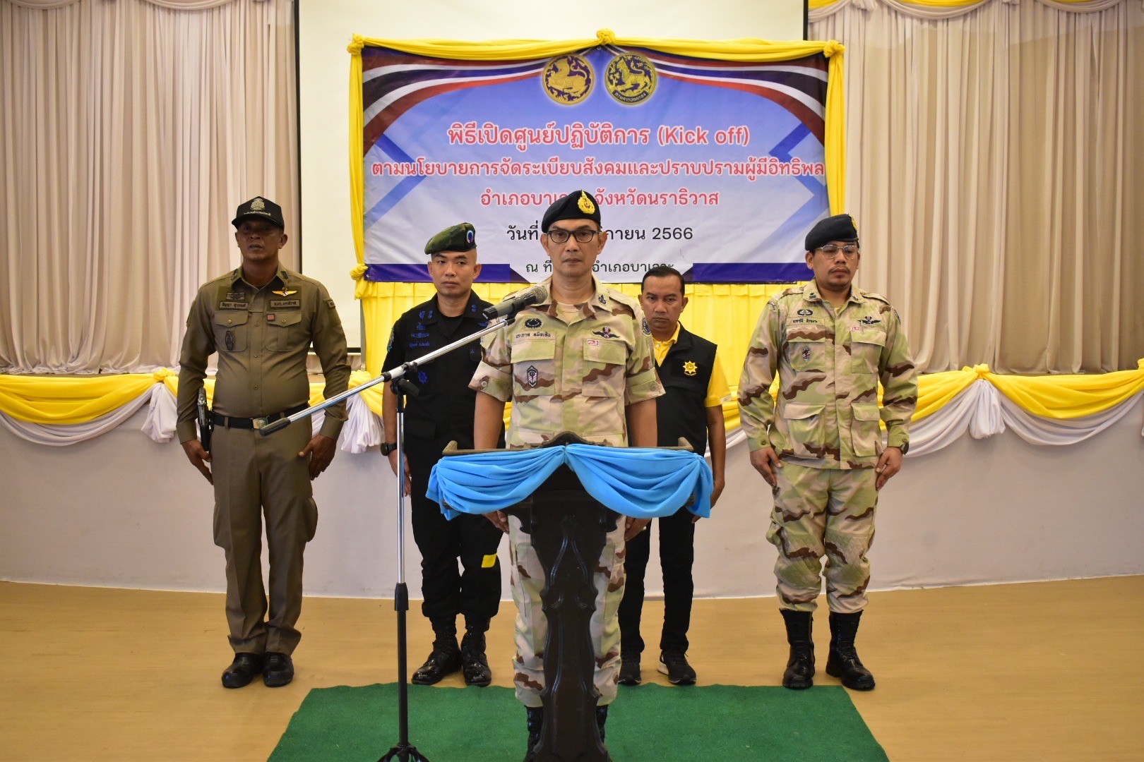 นายอำเภอบาเจาะ เป็นประธานพิธีเปิดศูนย์ปฎิบัติการ (Kick off) ตามนโยบายการจัดระเบียบสังคมและปราบปรามผู