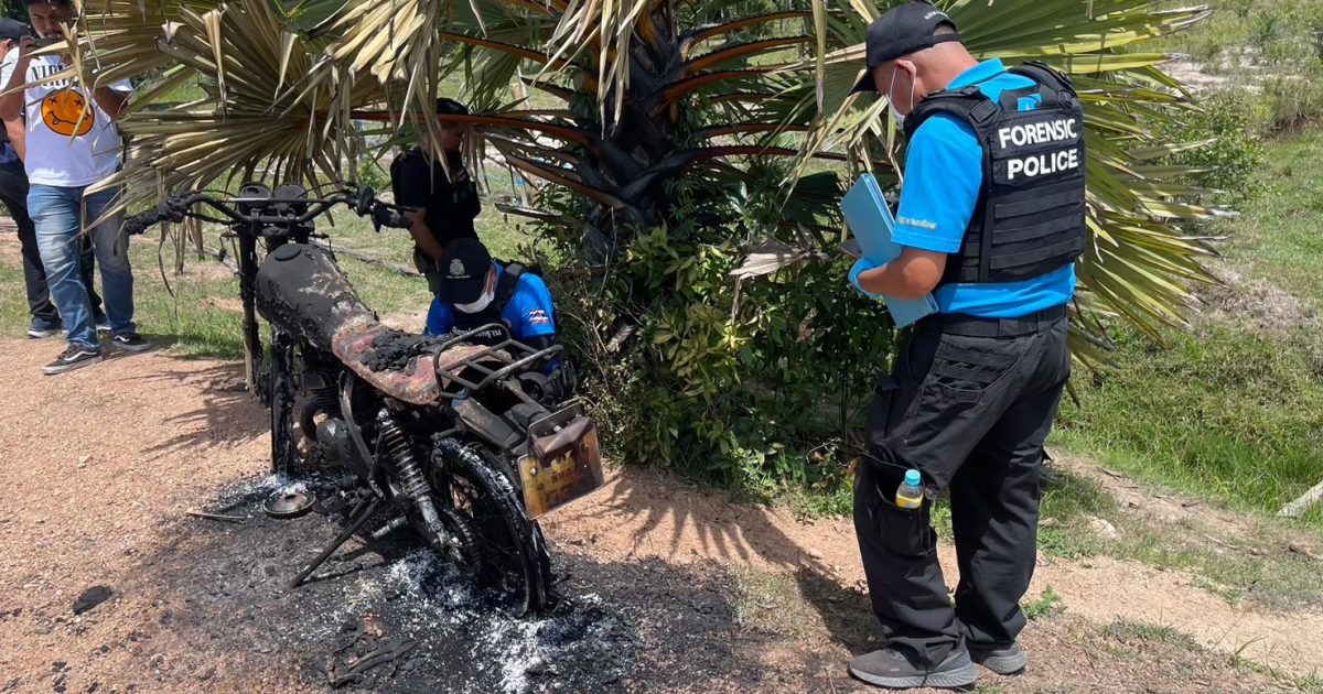 ตรวจที่เกิดเหตุเผารถจักรยานยนต์